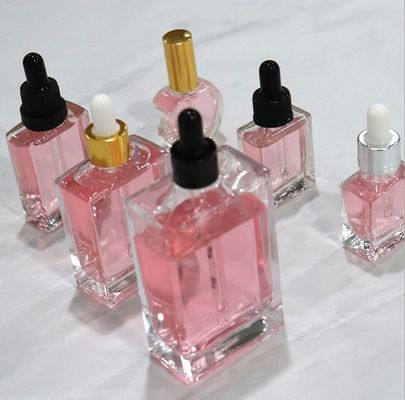 50 مل قطارة مربعة الشكل عبوة زجاجية مستحضرات التجميل شفافة زجاجات تخزين زجاجية
