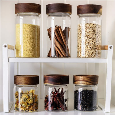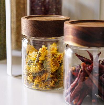 صديقة للبيئة القرص العلوي جرة زجاجية فارغة غطاء خشبي واضح علب المطبخ جرة زجاجية شفافة