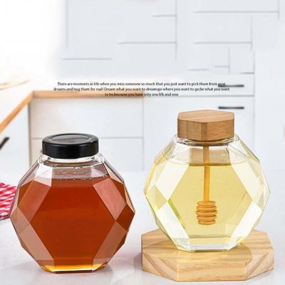 500 جرام العسل زجاجة العسل الزجاج زجاجات التخزين اغطية خشبية
