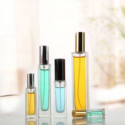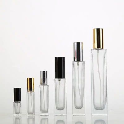 زجاجات عطر بخاخ زجاجي طويل القامة مربعة الشكل حاويات مستحضرات التجميل الزجاجية