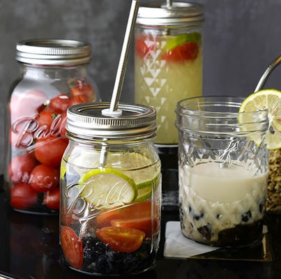 مورد جرة زجاجية بالجملة ذات فم واسع برطمانات ماسون 8 أوقية 16 أونصة زجاجات تخزين زجاجية مع الطباعة