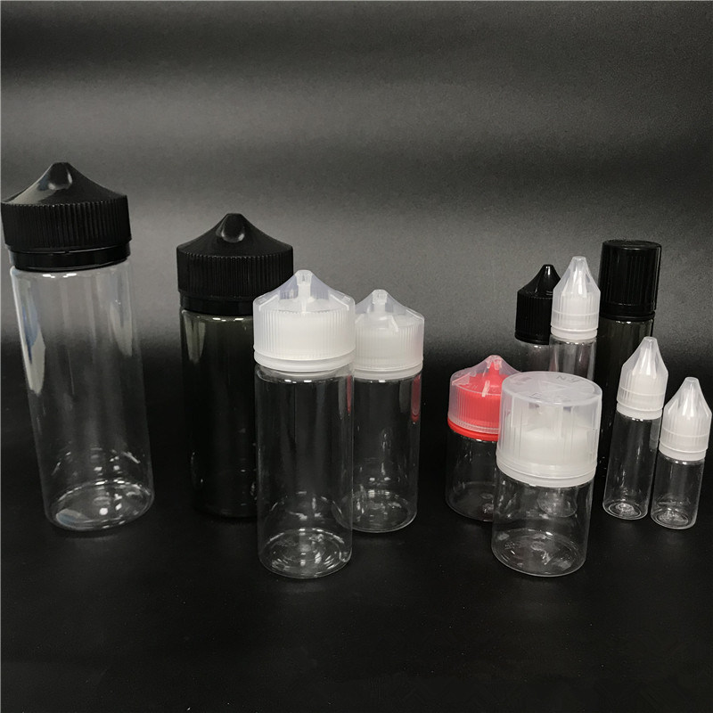 واضح الزجاجات البلاستيكية السوداء البلاستيك vape السائل 30 مل 60 مل الحيوانات الأليفة ه زجاجة عصير السائل ضغط زجاجة بلاستيكية السائل الحيوانات الأليفة