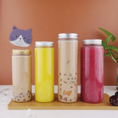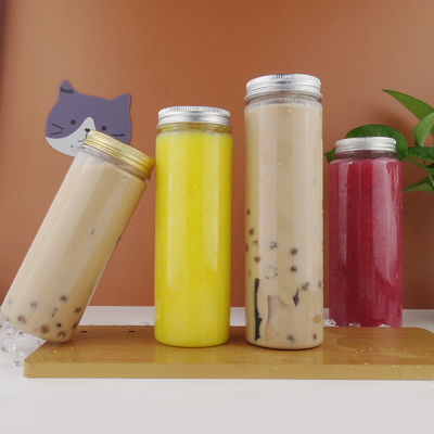 المشروبات 450 مل زجاجات عصير بوبا بلاستيكية مستديرة شفافة مع غطاء من الألومنيوم